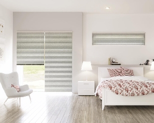 슬랫을 상부로 겹겹이 접어 올리거나 하부로 균일하게 내려 사용하며 어떤 위치에서든지 알루미늄 슬랫의 각도를 조절하여