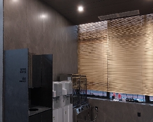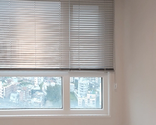 빛 조절 및 개방감을 세밀히 조절할 수 있는 블라인드입니다. 재질의 특성상 습도에 강하며 베네시안 블라인드라고도 합니다.