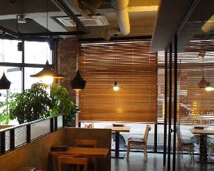 우드 슬랫을 상부로 겹겹이 접어 올리거나 하부로 균일하게 펼쳐 사용하며 어떤 위치에서든지 우드 슬랫의 각도를 조절하여