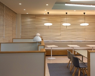 우드 원목을 가공하여 두께가 3mm 내외의 슬랫으로 만들어 사용합니다.