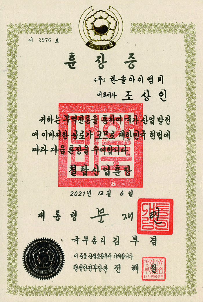 (주)한솔아이엠비 철탑산업훈장 및 700만불 수출탑 수상